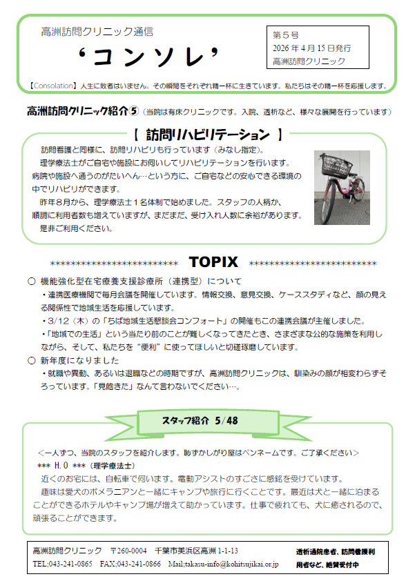 当院の案内、スタッフの紹介や活動など、ホットな話題を月次でお届けします!